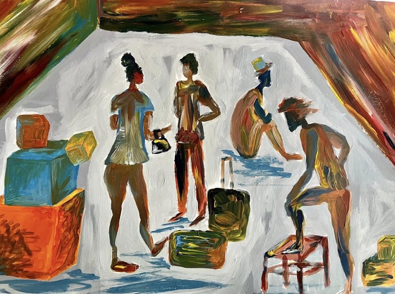 „A tehetséggondozó program első kreativitásra fokuszáló foglalkozásán, a diákok első körben az emberi test arányinak pontos ábrázolására törekedve, 4-5 gyors krokin keresztül bemelegítettek egy figuratív kompozició megalkotásához. Itt egy adott témához kapcsolódva, vázlatot készítettek. A felületen való komponálás után a javasolt különböző színbeli megoldásoknál, egy választott kontrasztot alkalmava, figyelve az expresszív színhasználatra, fény-árnyék érzékeltetésére, a harmóniára, az emberi figura arányaira, azok térben való elhelyezésére, igazán jó hatású, dinamikus kompoziciókat alkottak.” (Váncsa Mónika festőművész)